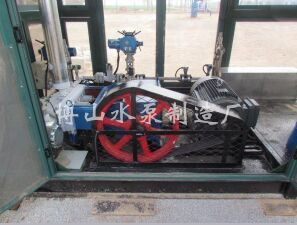 石油裝置主要由電機、皮帶輪、傳動箱和泵頭組成,組裝在公共底座上。泵驅動端的作用是將電機的旋轉運動變?yōu)橥鶑瓦\動且降速,并將電機的輸出功率傳遞給泵頭液力端,電機通過皮帶輪、曲軸、連桿和十字頭等部件來完成轉換和降速。傳動系統(tǒng)的曲軸、軸承結構為強制和飛濺浸油型式,這使得動力系統(tǒng)的壽命大大延長。泵頭由泵頭、柱塞、密封器、進液閥組成。本泵采用了具有良好耐磨性的材料做密封環(huán)和導向環(huán),因而其工作壽命長。密封由密封性能優(yōu)良的密封組件構成,確保了泵在正常工作壓力下,能夠可靠無故障的運行。