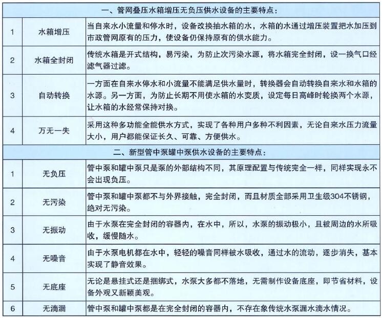 各類無負(fù)壓設(shè)備的主要特點
