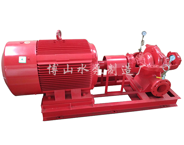 1、水平中開雙吸消防泵的吸入和吐出管均在水泵軸心線的下方,呈水平方向,與軸線呈垂直位置。泵蓋用螺栓與定位銷固定在泵體上,無需拆卸管路及原動機就可以檢修泵的轉子部件。